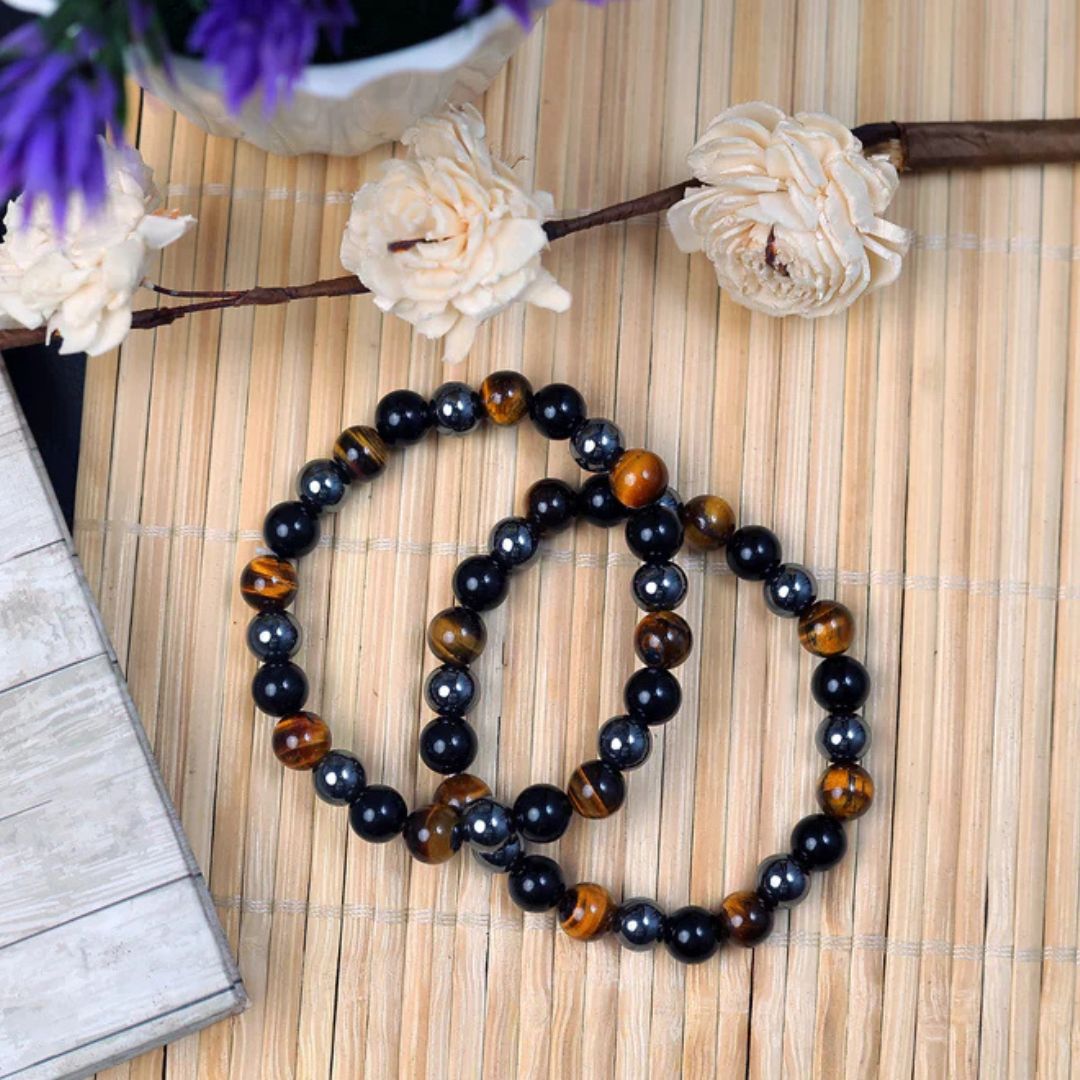 The Triple Protection Energy Bracelet combines Tiger Eye, Black Obsidian, and Hematite to offer strong protection and high energy. It works like an energetic shield that keeps negativity away while boosting your confidence, courage, and inner strength.