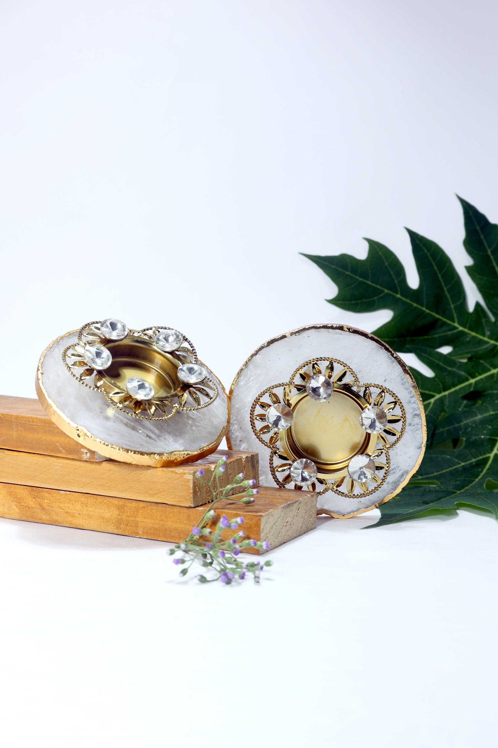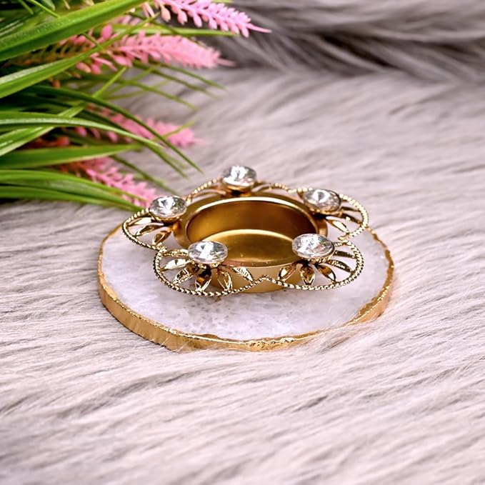 Handcrafted Antique Agate Gemstone Tea Light Candle Holder