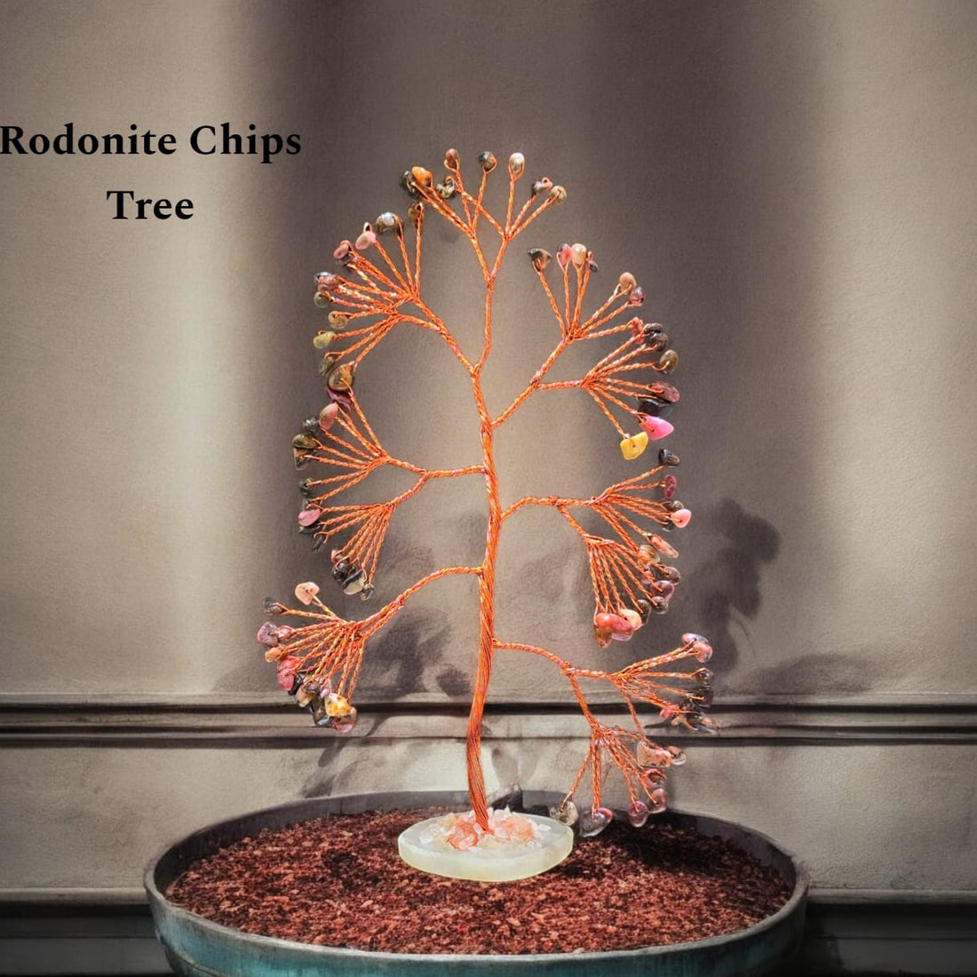Rhodonite Gemstone Slice Base Crystal Tree
