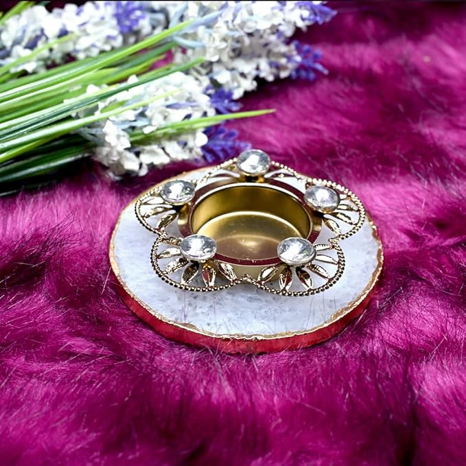 Handcrafted Antique Agate Gemstone Tea Light Candle Holder