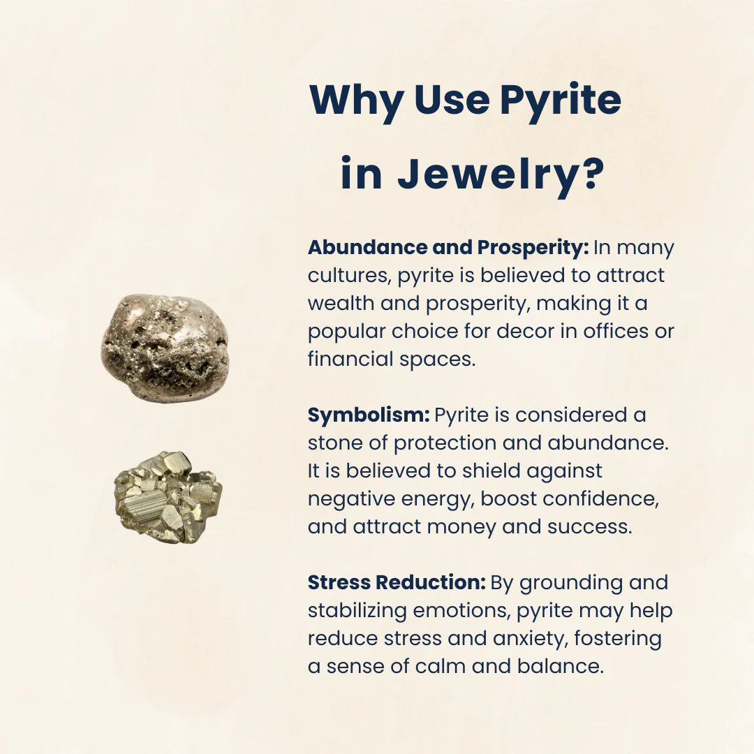 Symbolism of Pyrite – Pyrite is believed to create a protective shield against negative energies while symbolizing prosperity and abundance, encouraging confidence, motivation, and success in career and finances.