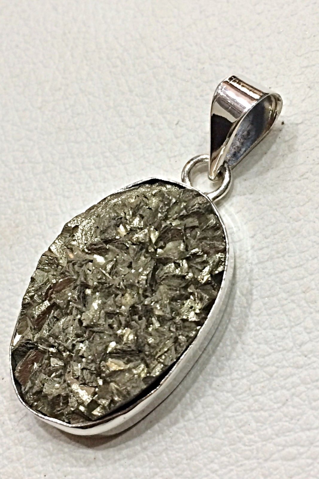 Add luck to your life by wearing this Ovel Pyrite Pendant. Pyrite stone is connected to the Solar Plexus Chakra and is also a powerful protection stone. Pyrite is also known as Fool’s Gold .