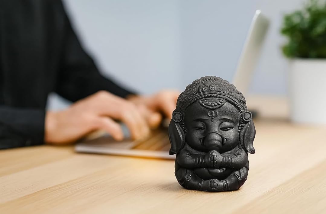 COMPACT FOR CAR DASHBOARD: Ideal for your car dashboard, this small Ganesha idol carries blessings and positivity, making every journey safer and more auspicious.