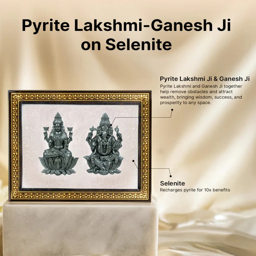 Pyrite Lakshmi ji & Ganesh Ji on Selenite Frame