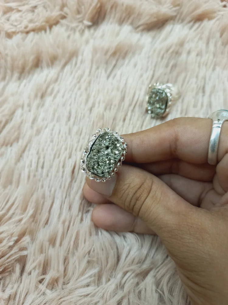 Handmade Raw Pyrite Ring (money magnet)for Men And Women