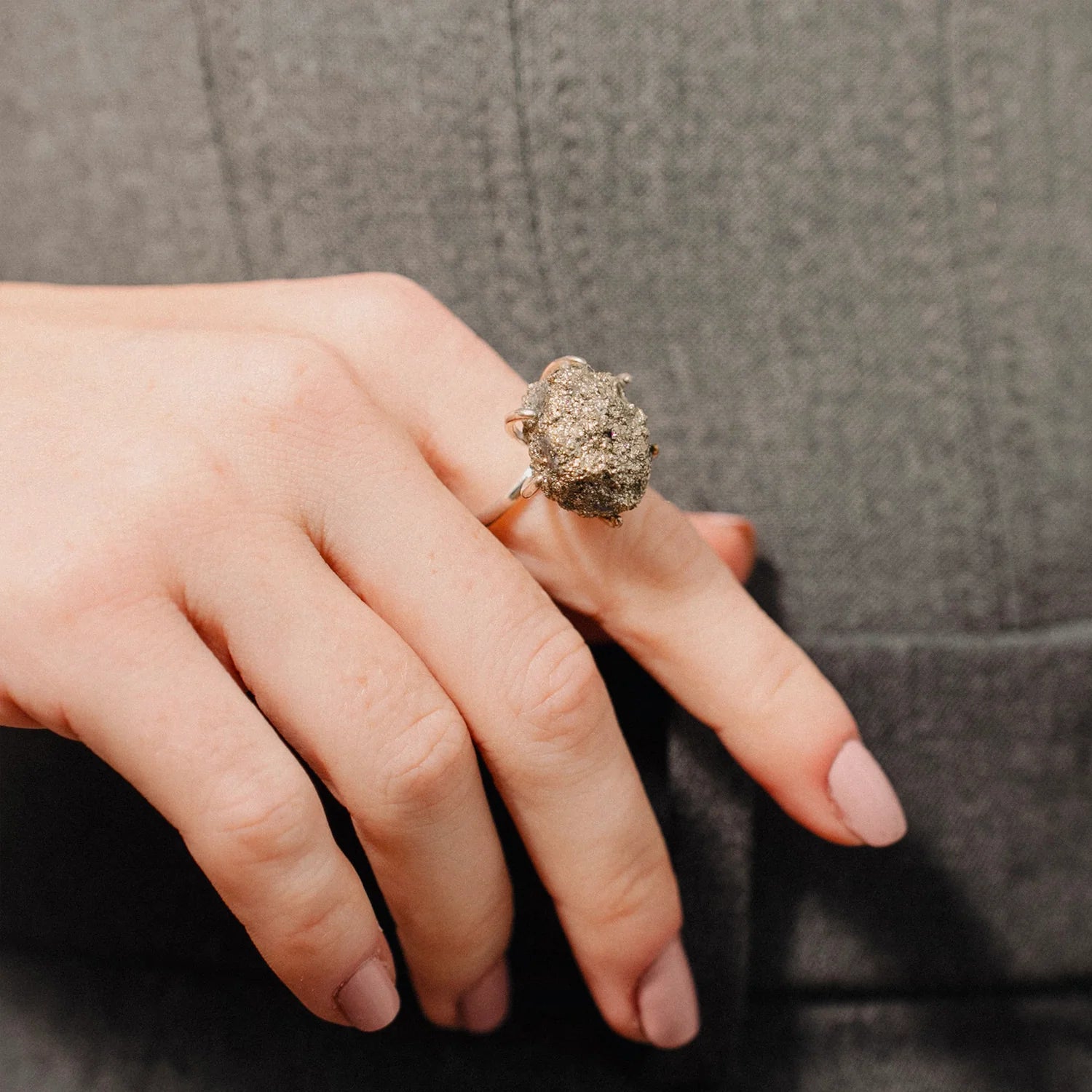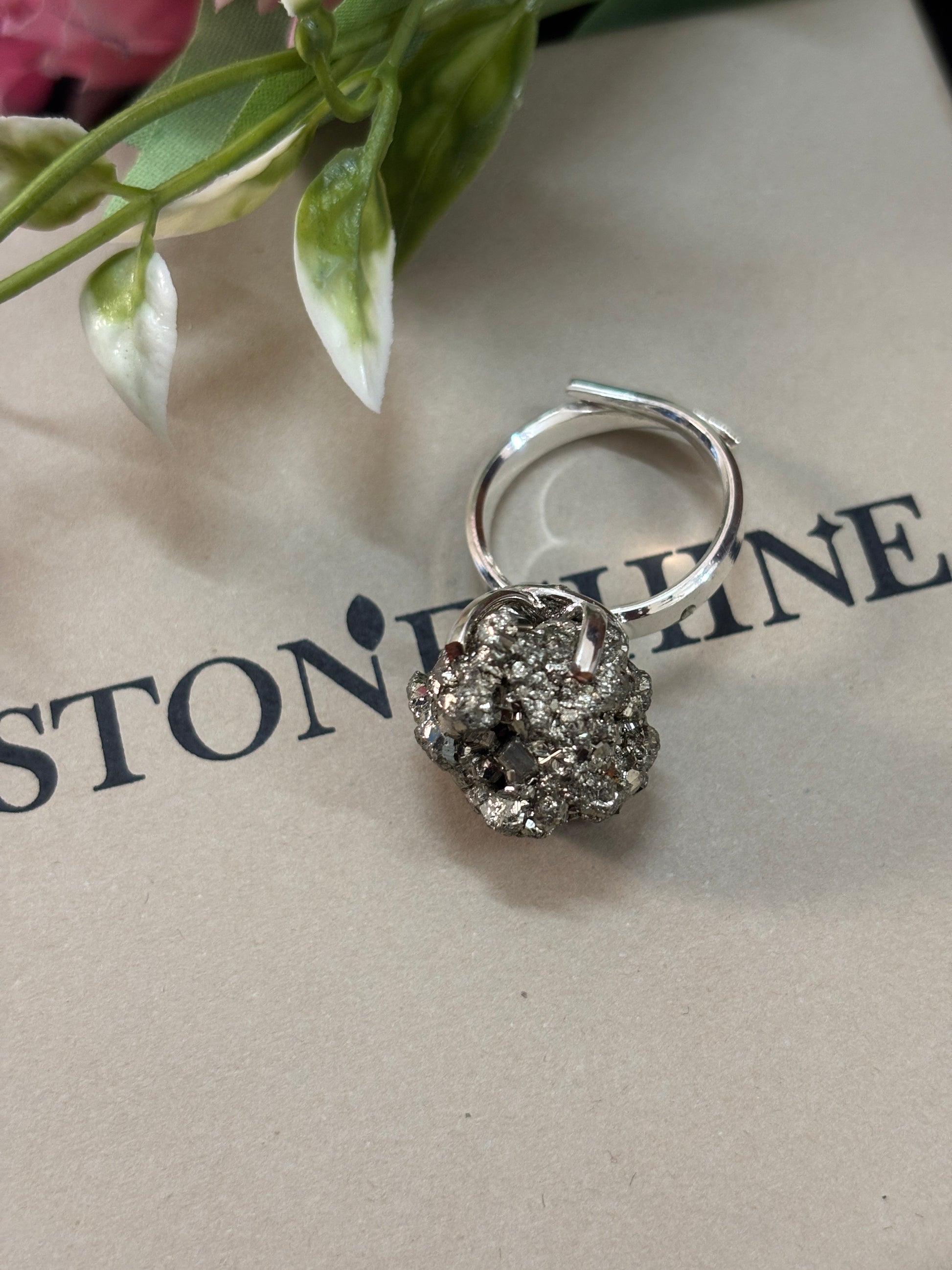 Raw Pyrite Crystal Ring