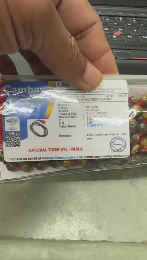 Certified Tiger Eye Natural Stone Mala: Jap Mala 108 Beads